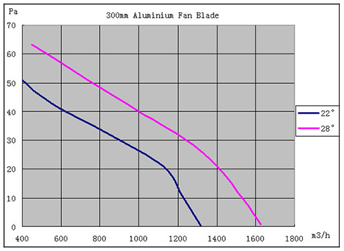ECQ電機空氣性能曲線測量在恒定速度1300rpm。