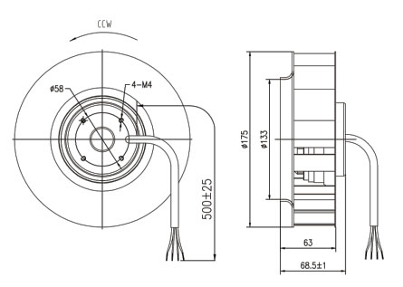 | YWFB2E175 | 230 | 50/60 | 0.24/0.26 | 50/52 | 2650/3100 | 490/570 | 1.5 | 63/68 | ①② |