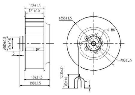②組成部件:高效外轉子交流電機、後傾式圓弧形鋁合金葉輪、免維護深溝球滾珠軸承、靜電粉末噴塑轉子。