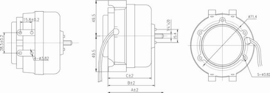 型號額定電壓頻率輸入功率輸出功率額定電流轉向A mmB mmC mm